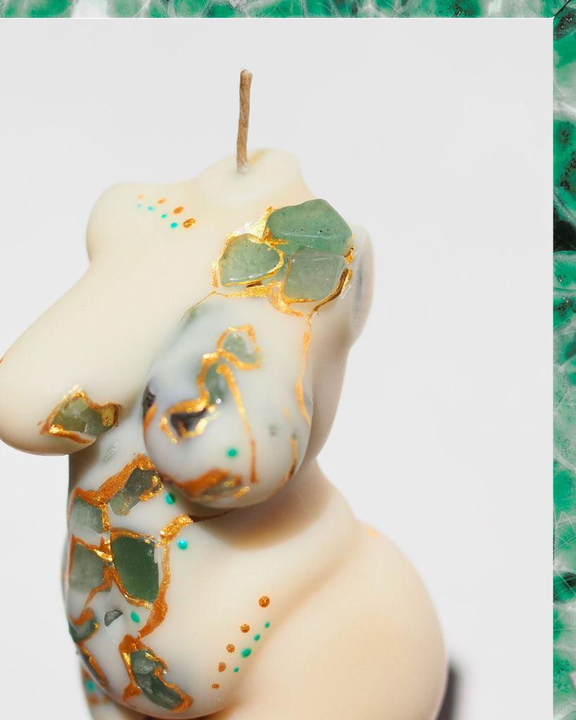 Color: Jade Stone - Infused with a captivating fragrance, this candle features genuine Jade crystal inside to enhance your space with subtle positive energy. The hand-painted design, accented with delicate gold detailing, adds a luxurious finishing touch, making it both a statement decor piece and a soothing aromatic experience. Ideal for creating a calming ambiance while elevating your home’s aesthetic.