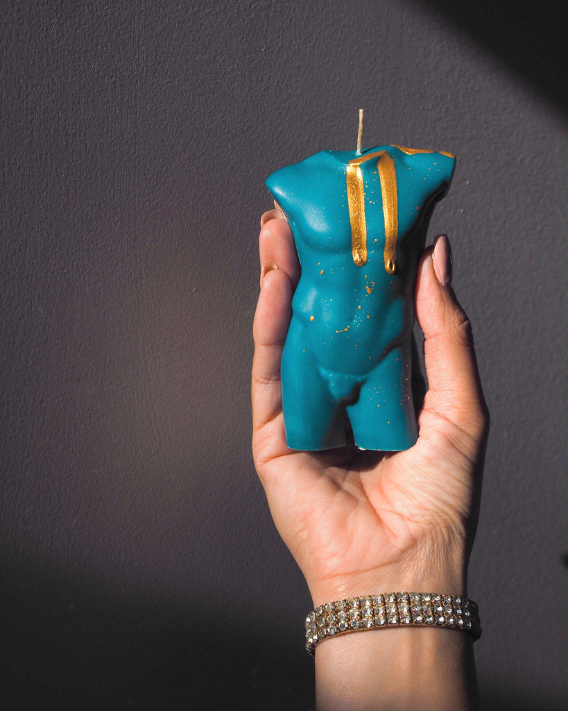 A gorgeous rich teal with a splash of gold and a hint of gold drip for a subtle gold look.