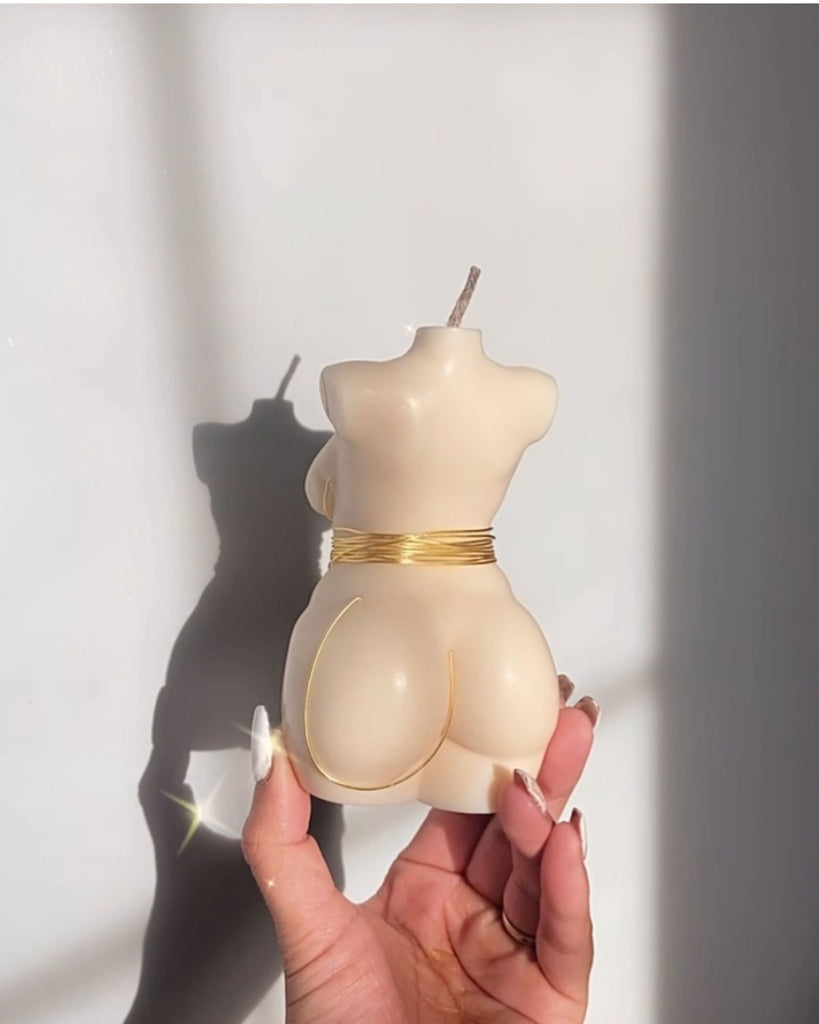 Color: In house designed gold wire wrapped around Taylor’s curves. Highlighting gold accents around the hip and breast.