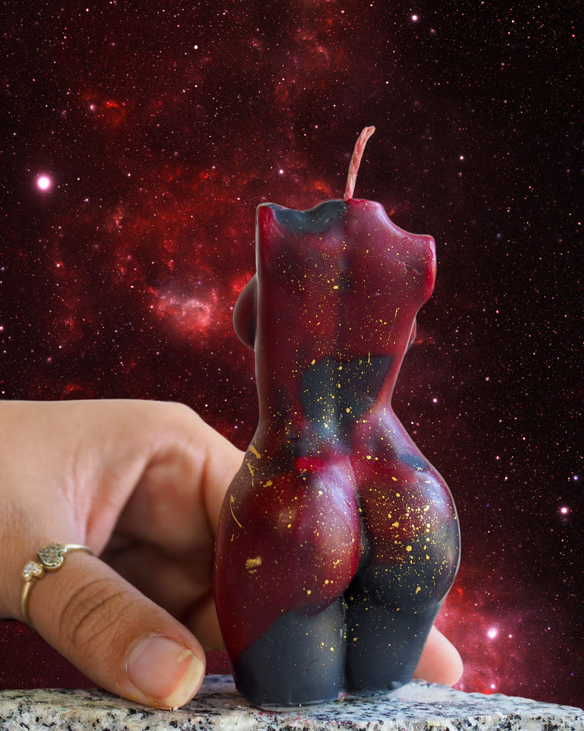 Red Nebula: Rich red tone like the clouds of Red Nebulas filled with black wax on the inside to give that bold 3d pop effect. Of course a splash of gold representing scattered stars.